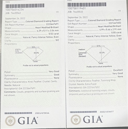 0.52 & 0.55 Carat Fancy Intense yellow diamond GIA graded Diamond