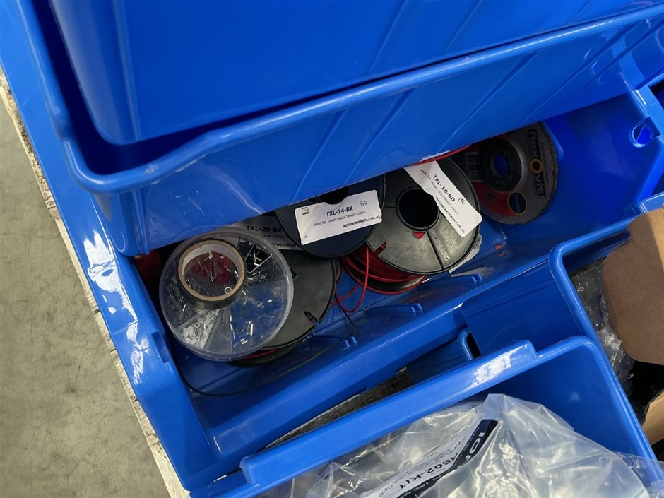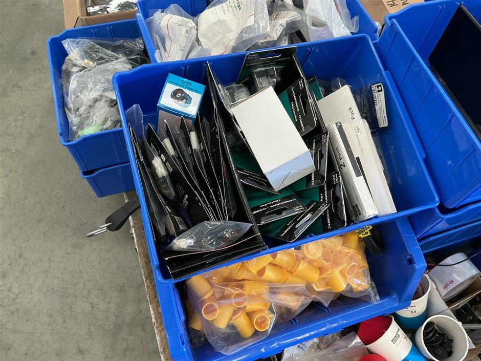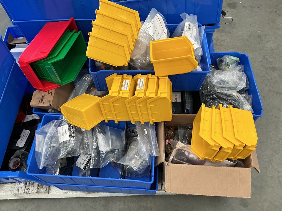 Pallet of Assorted Electrical Supplies and Storage Containers