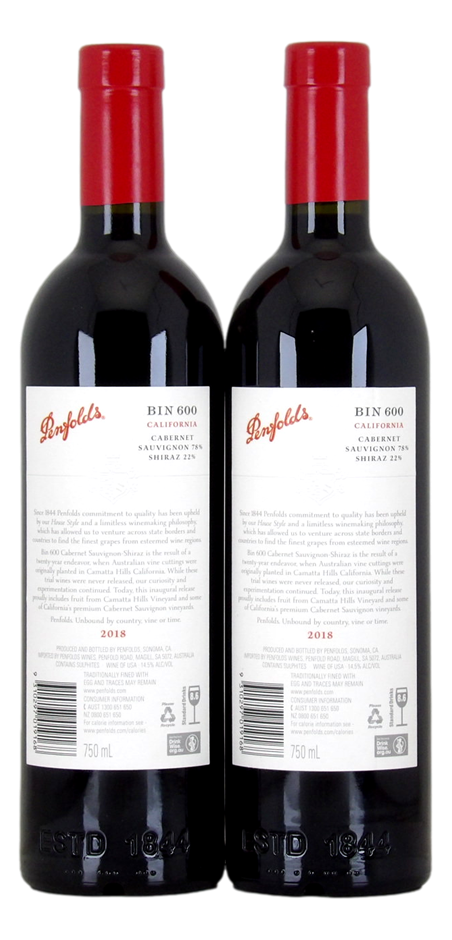 Penfolds Bin 600 Cab Shiraz 2018 (2x 750mL), California.