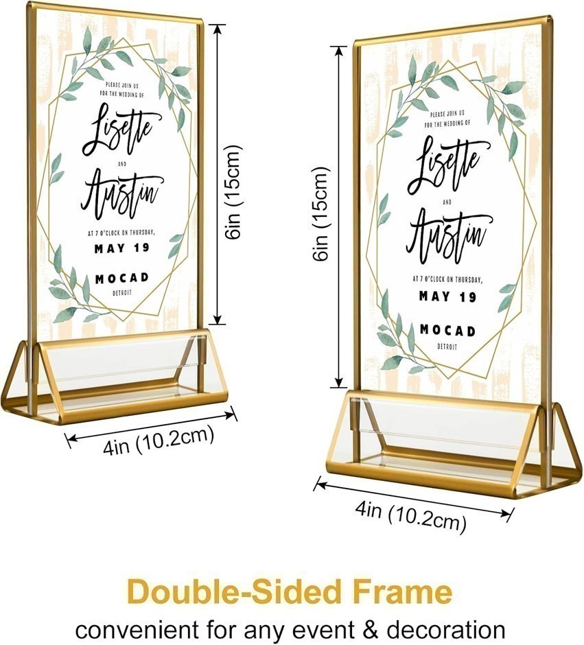 ACRYLIC Gold Sign Holders, 4x6 Clear Picture Frames with Gold Borders and Vertical Stand, Double Sided Table Menu Display Stand for Restaurant Signs, Wedding Table Numbers, Photos - 6 Pack (Code: B09Q8M8XGF) (140448-80)