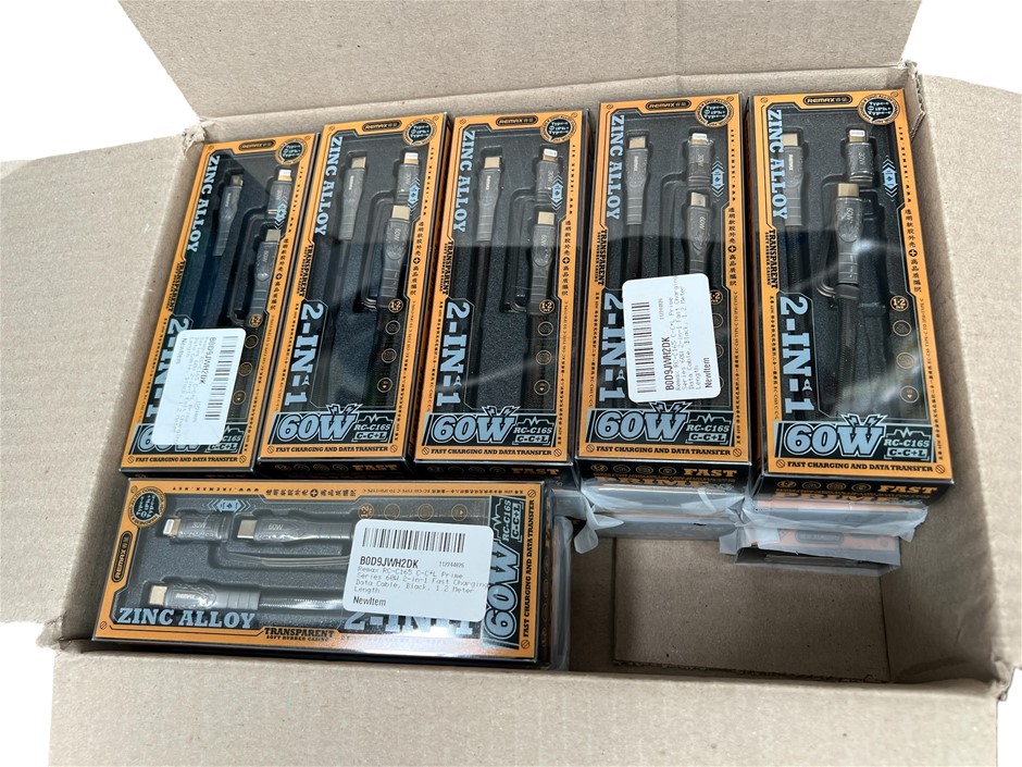 18 x REMAX Type-C / Type C + Lightning 2-in-1 Zinc Alloy Braided Fast Charging Data Cable 60W 1.2M Prime Series RC-C165 - Black. (Code: B0D9JWH2DK-K18) (333982-81)