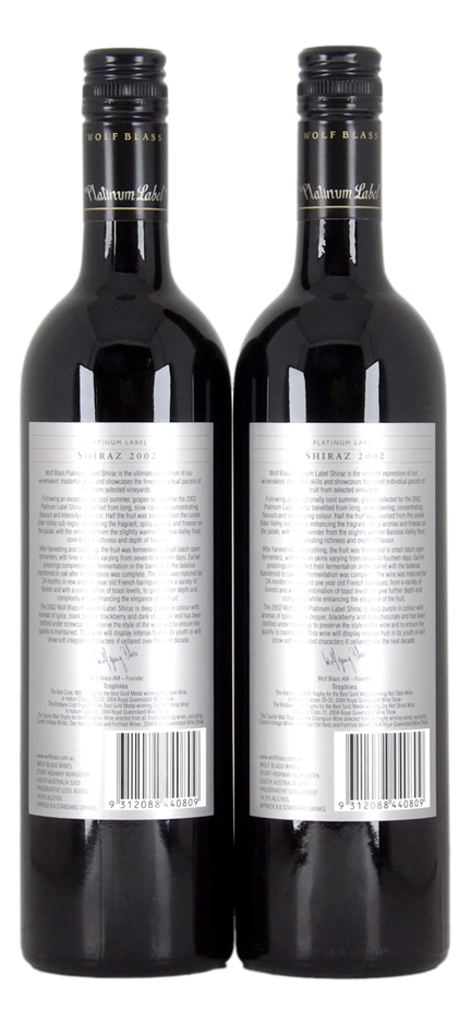 Wolf Blass Platinum Label Shiraz 2002 (2x 750mL), Barossa Valley.