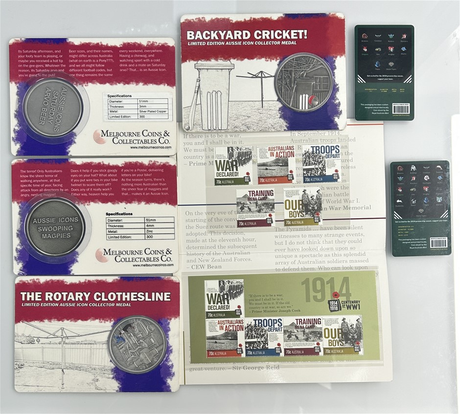 A mixed collectible bundle featuring Australian-themed commemorative medals