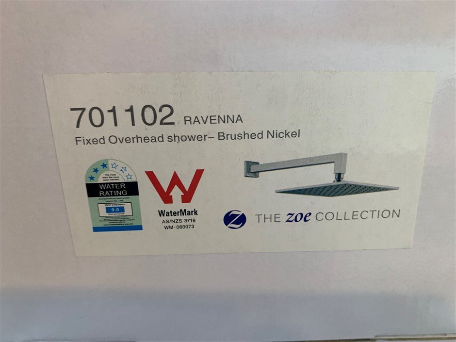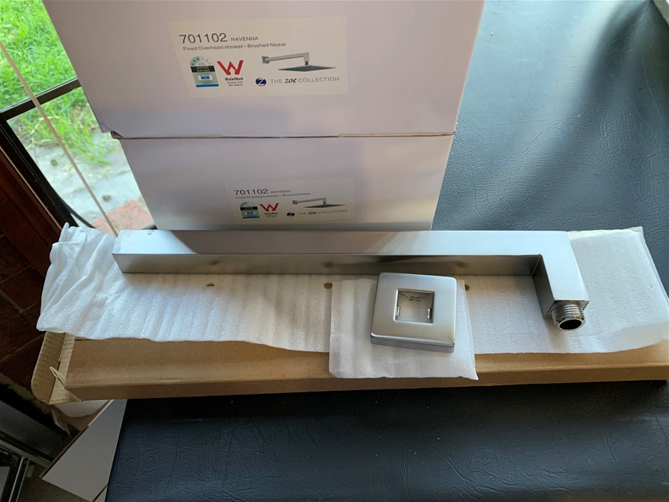 New in Box Shower Head with Arm, 200mm, Brushed Nickel Finish