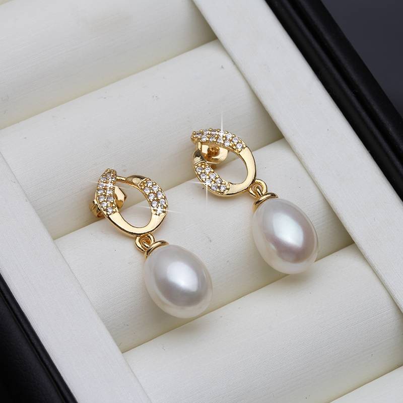 Genuine White Freshwater Pearl Eternity Drop Earrings in Gold