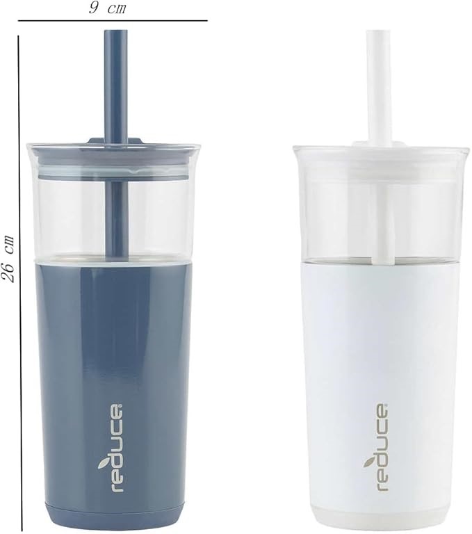 REDUCE Aspen 590ml (20oz) Tumblers, 2-Pack, Vacuum Insulated Glass Tumblers with Stainless Steel Sleeves - 2 Count (Code: B0CY3FRGMY) (140253-84)