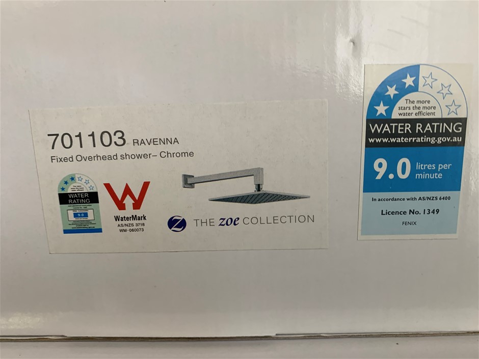 New in Box Zoe Collection 200mm Fixed Overhead Shower with Arm - Qty 1;