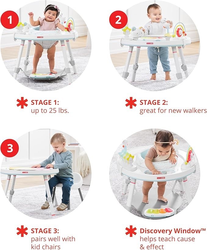 SKIP HOP Silver Lining Cloud 3-in-1 Baby Activity Centre & Toddler Table - Interactive Play Centre with Light-Up Piano, 360° Rotating Seat & Clip-On Toys, for 4 Months +. NB - Slightly Damaged Box. (Code: B00VDP9EB2-SDB1) (140153-86)