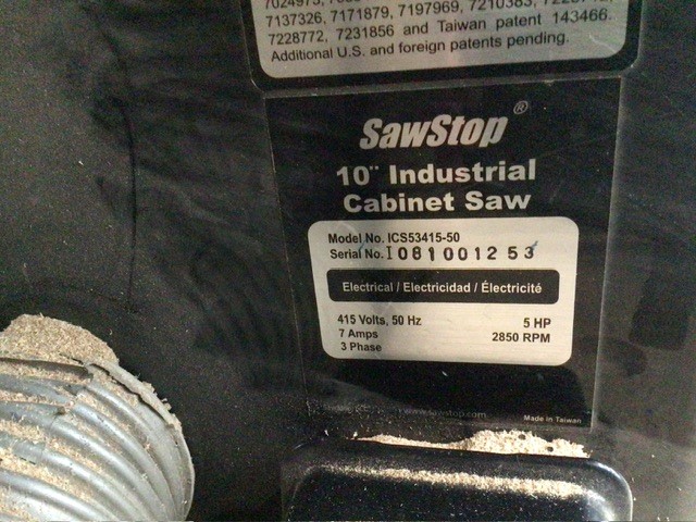 SawStop ICS53415-50 3 Phase 10” Industrial Cabinet Saw And Bench