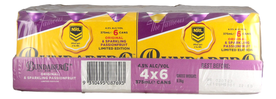 Bundaberg Rum Limited Edition Original & Sparkling Passionfruit (6x4x 375mL) Qld.