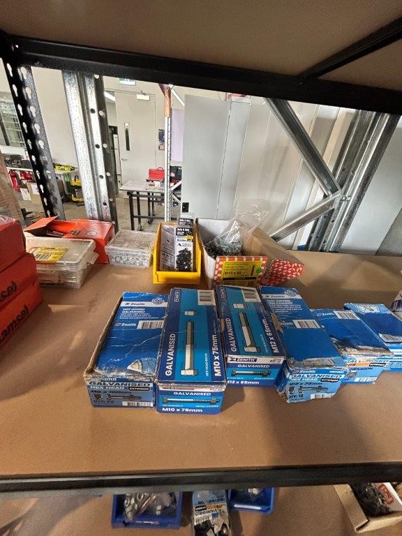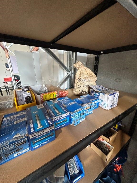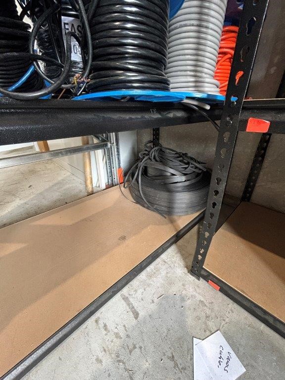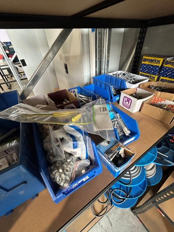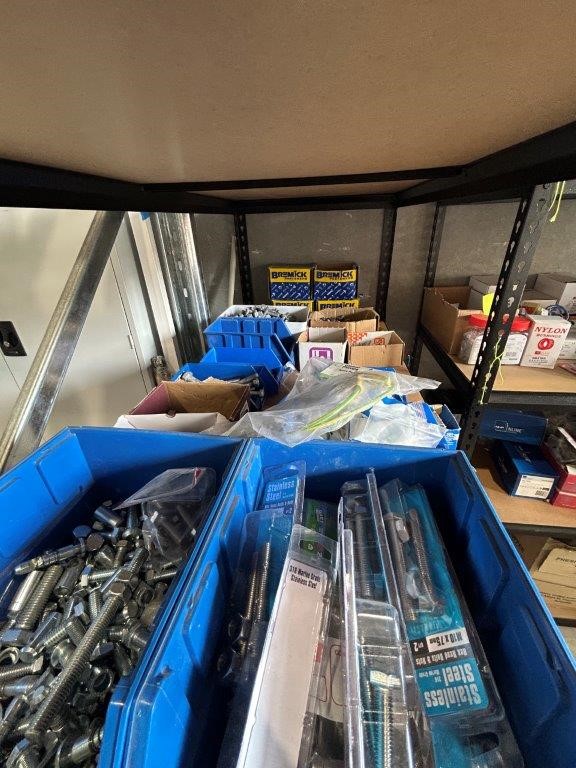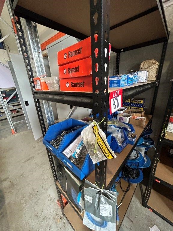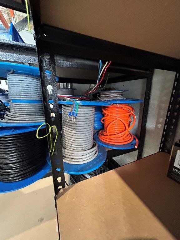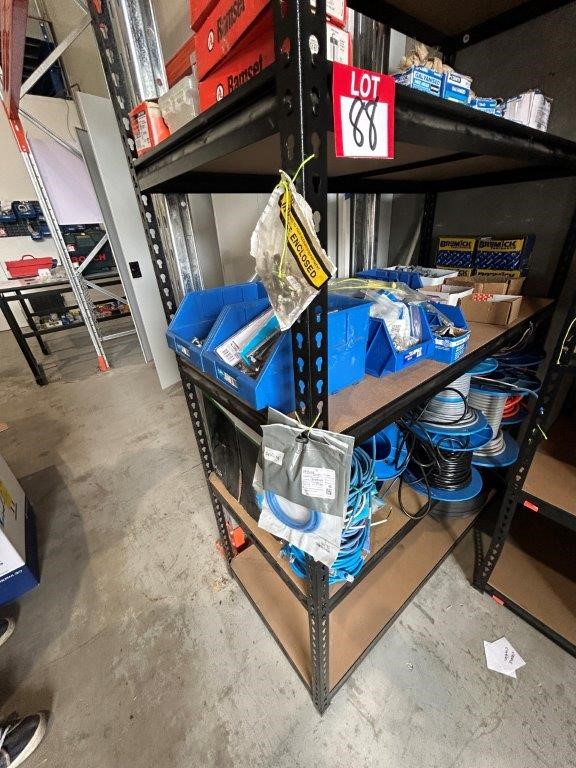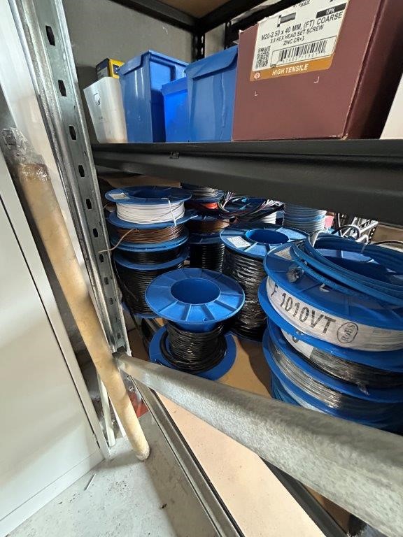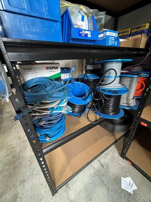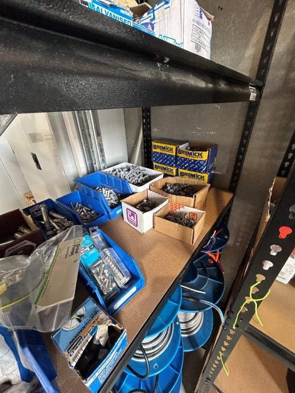 Shelving Unit and Contents Including a Large Quantity of Fasteners and Cable Rolls