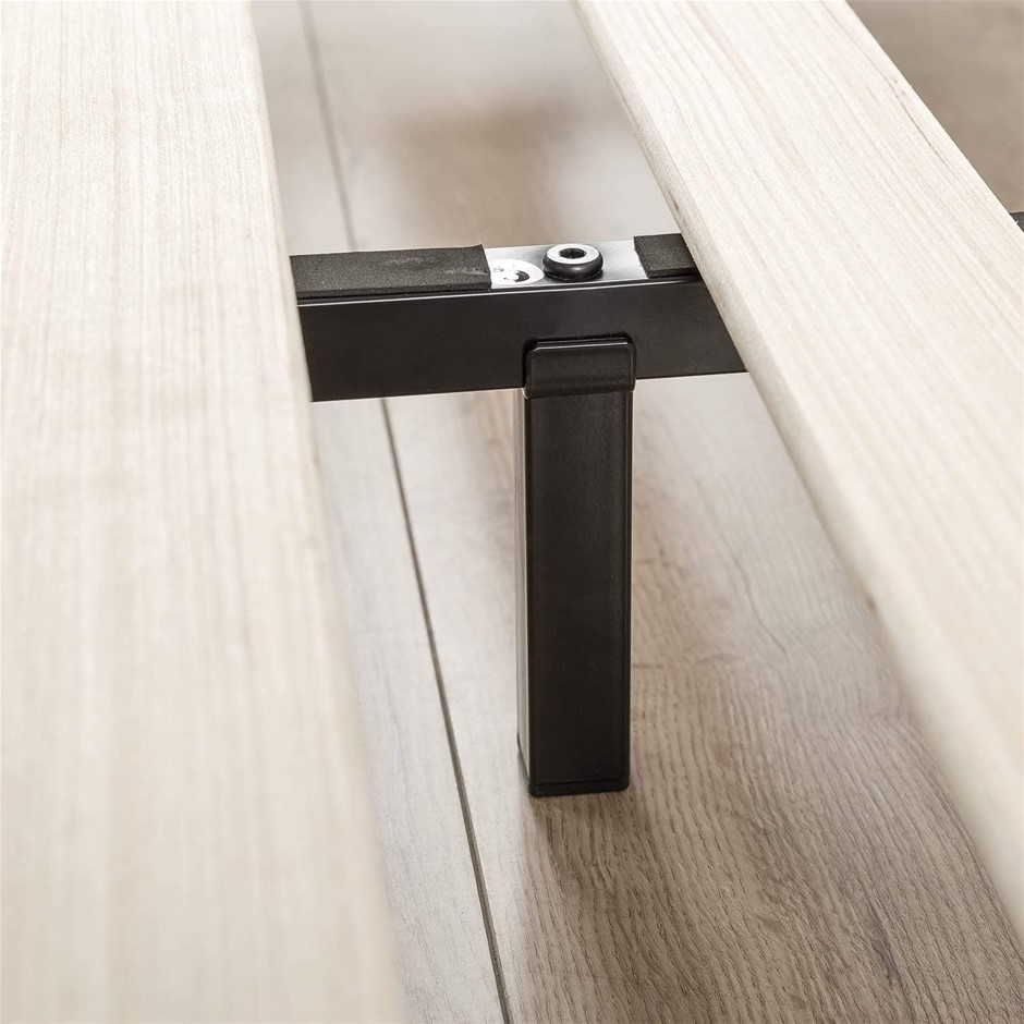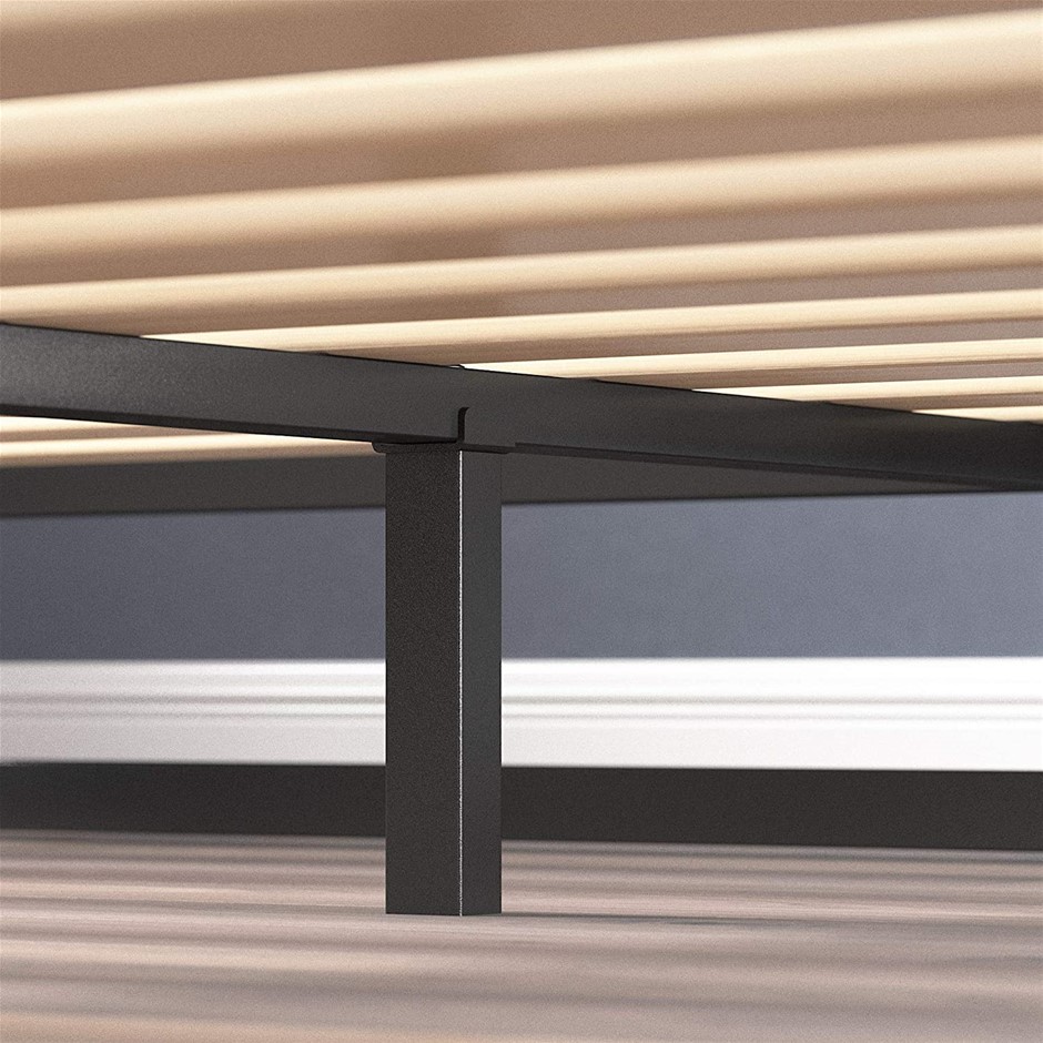 This sturdy modern studio platforma mattress foundation is designed for strength and style. Perfect for higher profile mattresses or those preferring a modern style. The extra strength steel framed mattress foundation by Zinus features wooden slats that provide strong support for your memory foam, latex, or spring mattress. 15cm high and compatible with or without a bed base. Easy to assemble and arrives in a narrow box to make moving through hallways and upstairs easier. Another comfort innovation from Zinus. Pioneering comfort. (SN:AU-MBBF-6Q) (292781-113)
