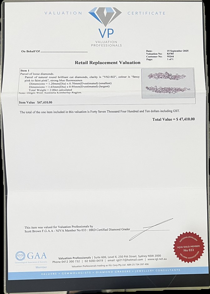 2 Carat Pink round diamond Australian Kimberley region diamond $47,410