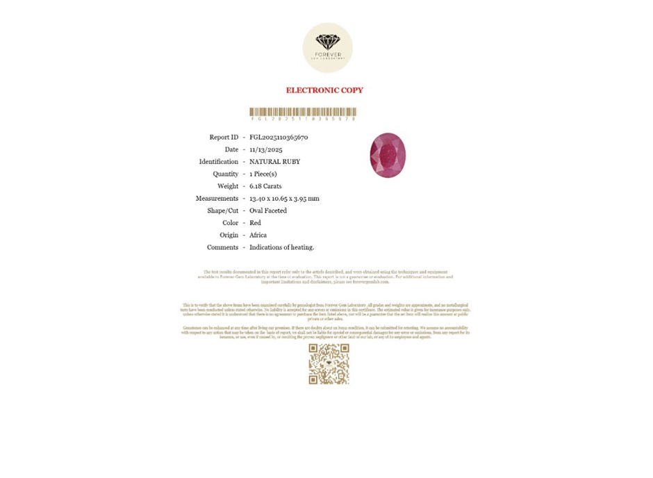 6.18 carat red natural certified ruby
