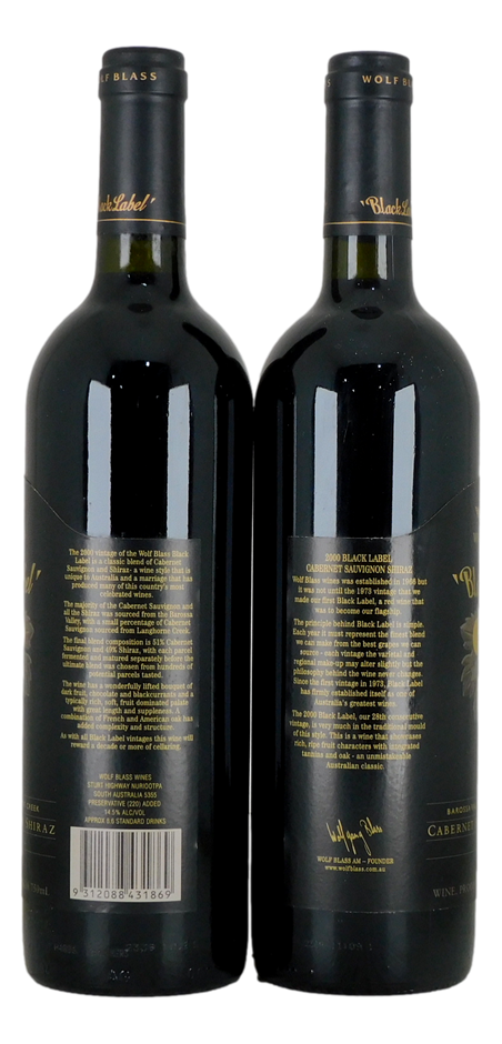 Wolf Blass Black Label Cabernet Sauvignon Merlot 2000 (2x 750mL), SA.