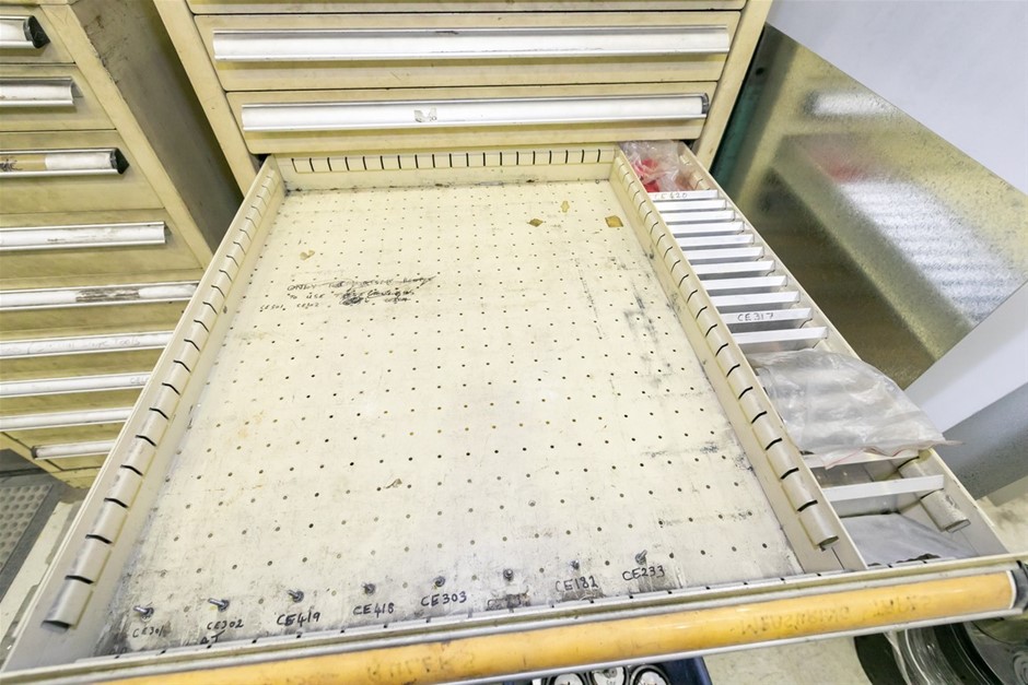 Punch Press Machine Components With Drawer Cabinet