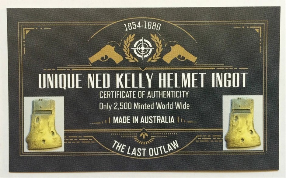 Rare 2016 ``Ned Kelly`` Helmet Ingot, 999 24k Antique Gold Plated, Outlaw, Guns 27.1g