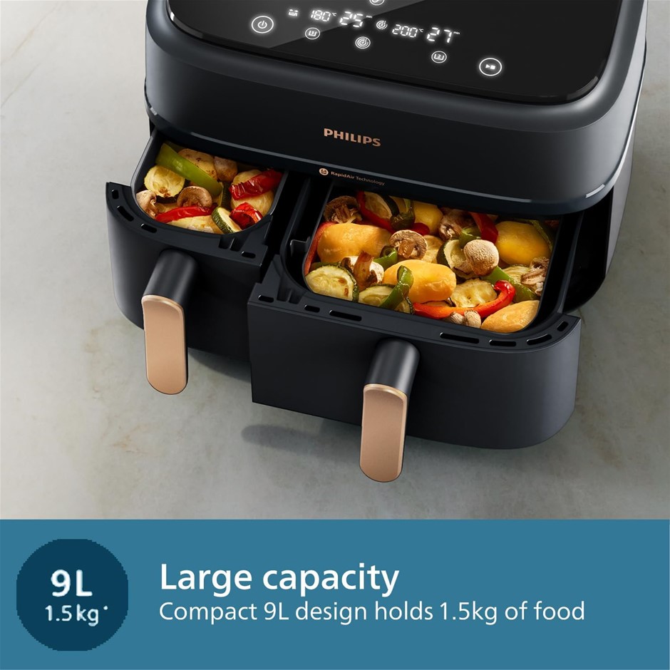 PHILIPS Dual Basket Air Fryer 3000 Series, 9L, 90% Less Fat and Energy Saving, HomeID App (NA352/00).(Code: B0D2XXZJKD) (332159-93)