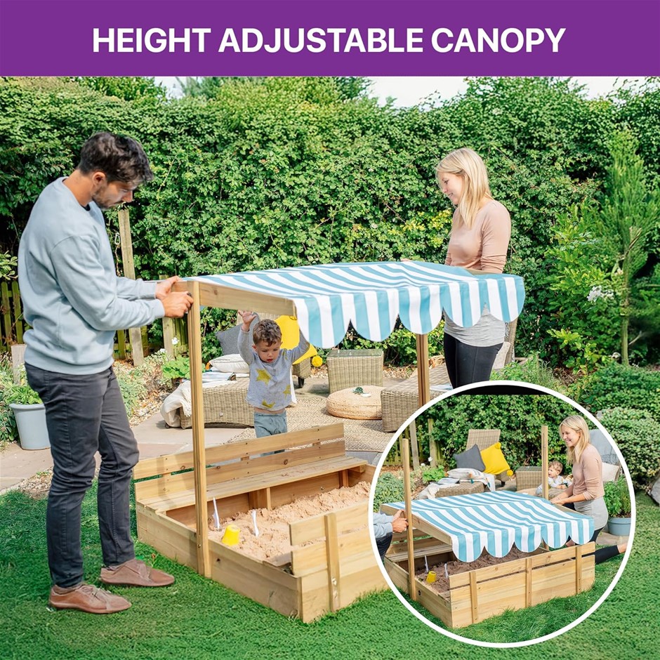 PLUM Wooden Sandpit with Canopy, Natural. NB: Sand NOT included. (Code: B0DJ8SYN5G) (333121-93)