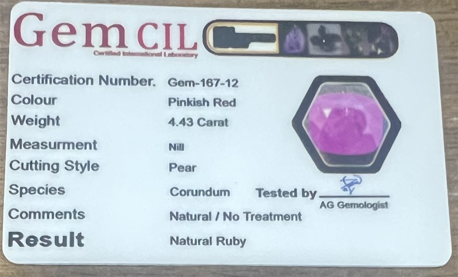 4.43 carat Pinkish Red Natural certified ruby