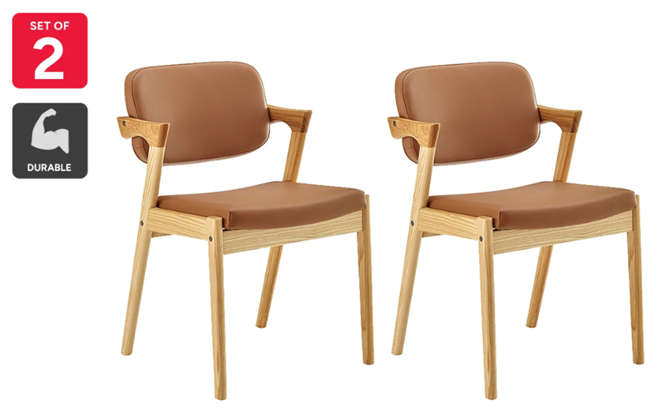 Set of 2 Matt Blatt Kai Replica Danish Dining Chairs (Tan PU/Ash) (Code: MBKAI2DCTWA) (140291-94)