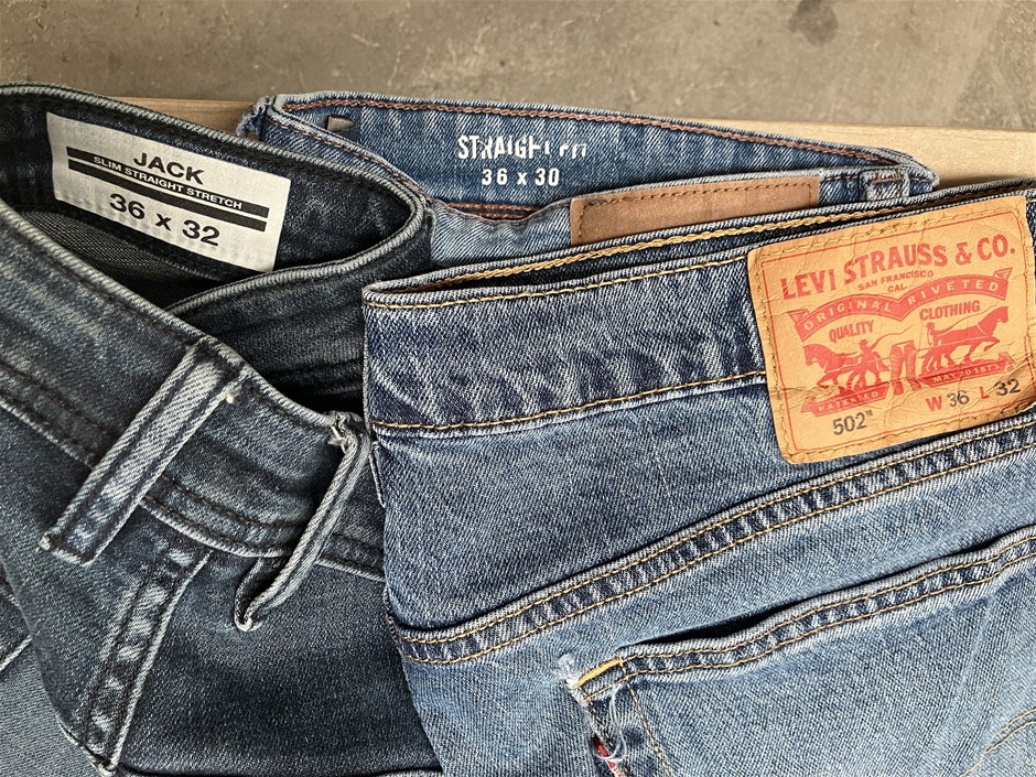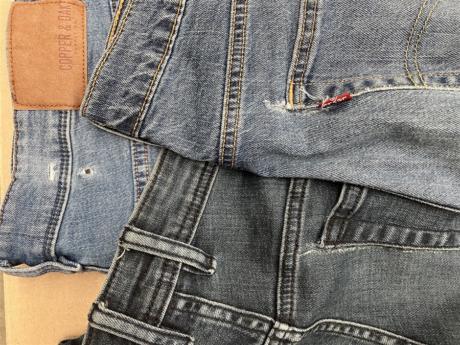 3 x Assorted Men`s Jeans. Sizes 36. Incl: LEVI`S, BUFFALO & COPPER&OAK. NB: have been worn w/ tears around crotch and back pocket areas. (Code: CC116998) (330909-95)