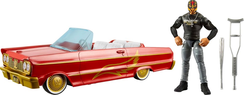 MATTEL WWE Action Figure & Toy Vehicle Set, Rey Mysterio Main Event Figure & Lucha Low Rider Car with Launching Action & Hydraulics. (Code: B0CPKXW5MM) (332388-96)