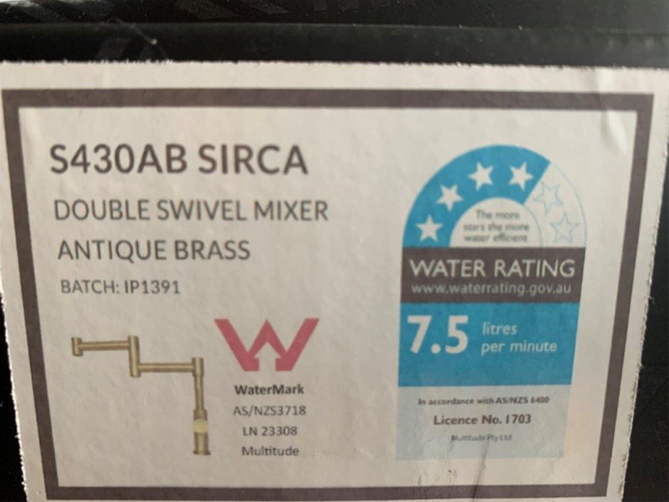 S430AB Sirca Double Swivel Mixer Tap, Antique Brass - Quantity 1