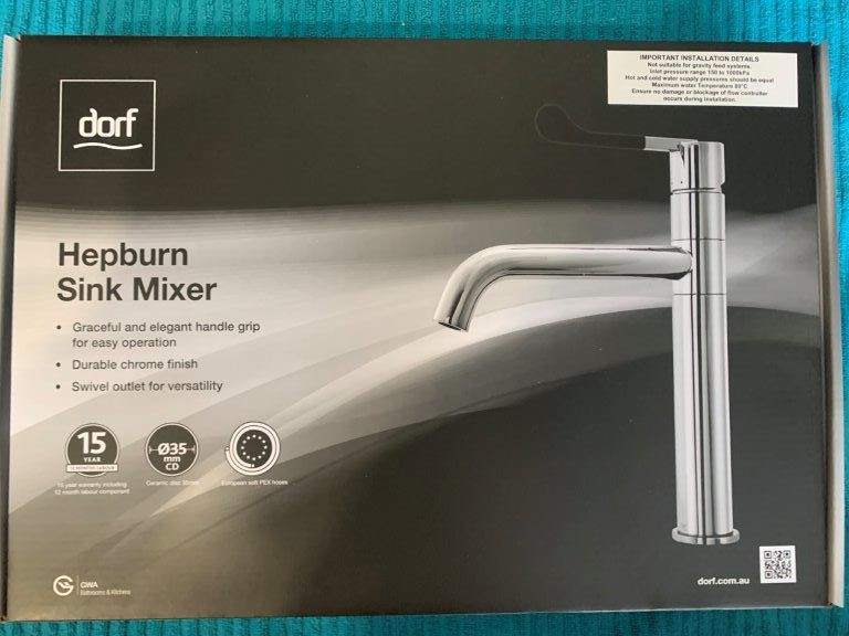 New in Box Dorf Hepburn Swivel Sink Mixer Tap, Brass - Quantity 1
