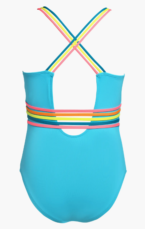 HOBIE Girls One Piece Swimsuit, Blue Hawaii//Smiles for Miles, 12 (Code: B0BFBMFKMX) (139593-99)