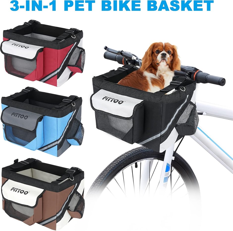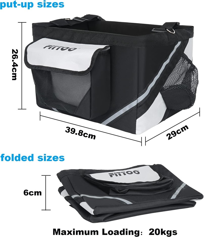 FITTOO 3-in-1 Bike Basket, Multi-Purpose Bike Bicycle Pet Basket, Shopping, Commuter, Camping and Outdoor - Foldable, Detachable and Easy to Install (Black/Grey). (Code: B09MF9K421) (330886-100)