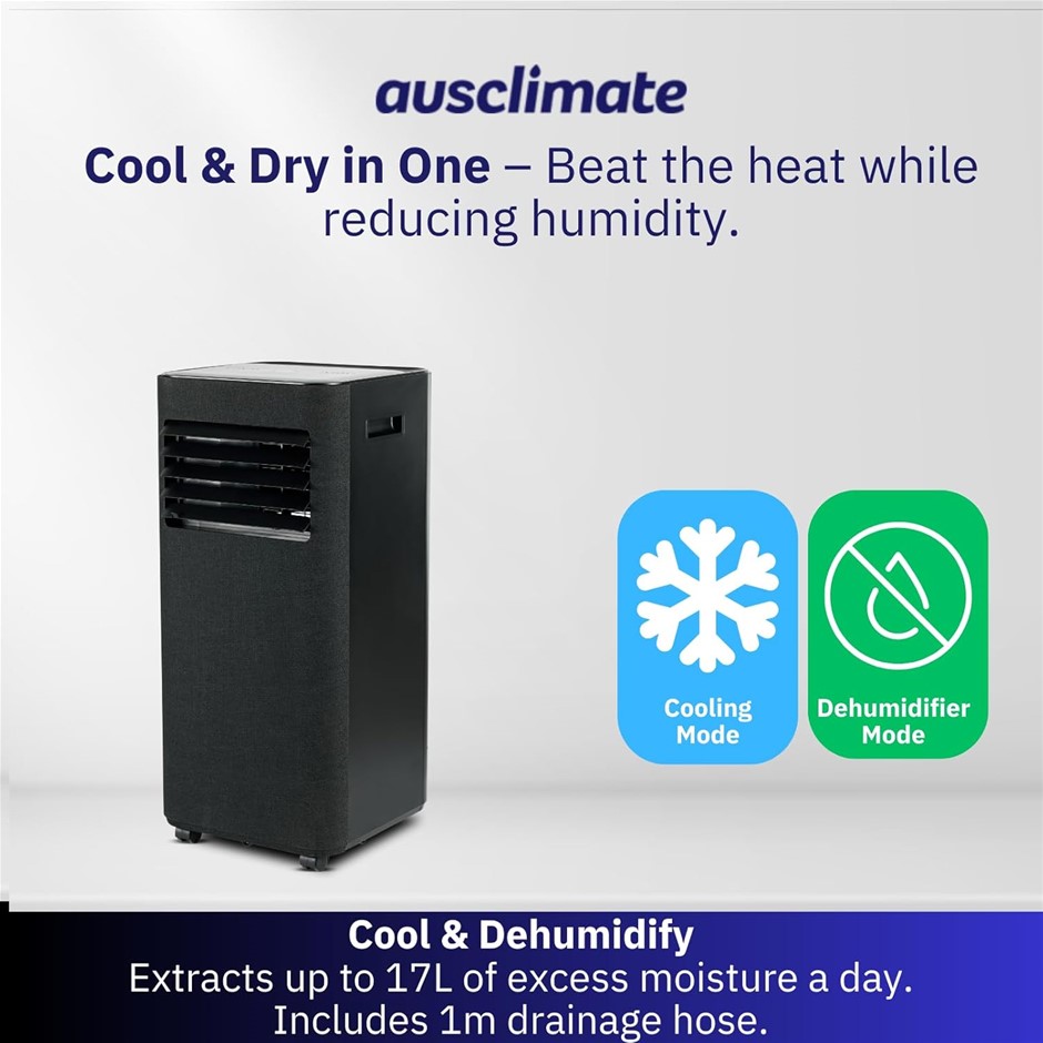 AUSCLIMATE 2.05kW Smart Compact Portable AC for Medium Size Room, Charcoal Black. NB: Minor Use & Damaged Box. (Code: B0DG8HCKSW-MU-DB) (332115-102)