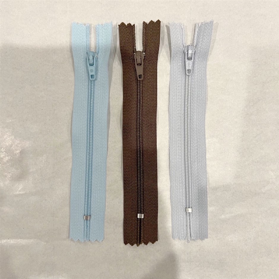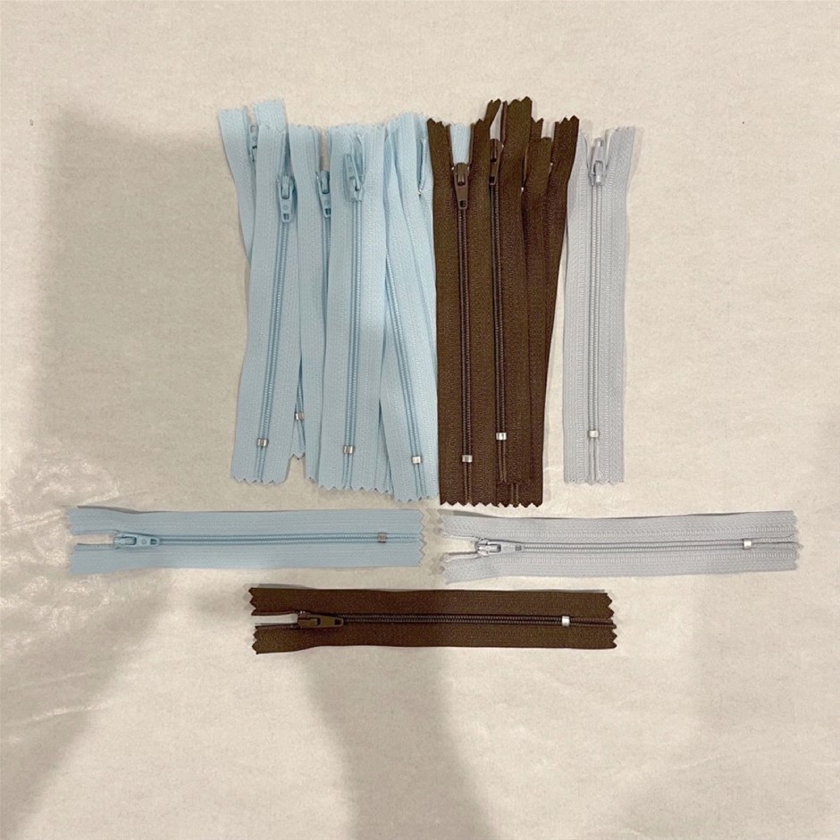 Light Blue, Mid Brown and Pale Blue Closed End Zips for Clothing - 16Pcs, 12cm long