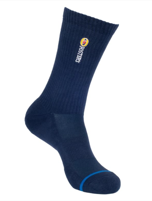 FOSTERS by FOOT-IES Beer Vertical Embroidery 2 Pack Socks, Navy & Cream, Size AU 8-13 (Code: FFOS289-NCRM-M/L) (139593-104)