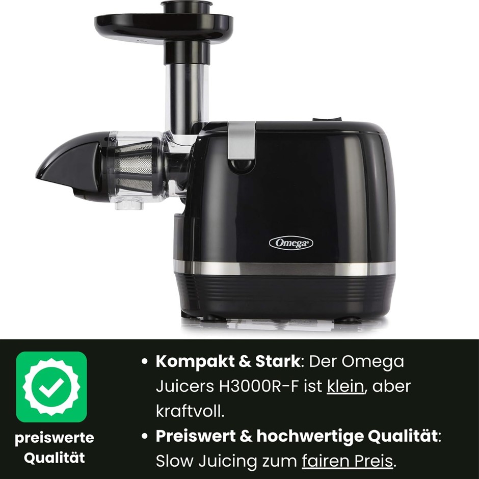OMEGA Juicer H3000R Slow Masticating Extractor, 150-Watt, Black. NB: Has Been Used & Not in Original Box. (Code: B08FCRK64V-U-NOB) (332388-105)