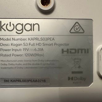 KOGAN S3 Full HD Smart Projector - (KAPRLS03PEA). NB: SECONDS. Photos as is.