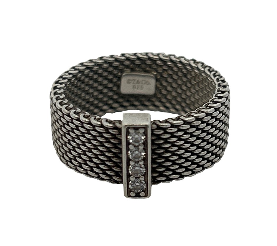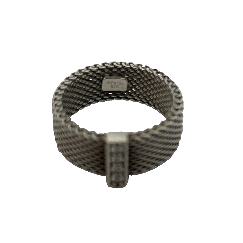 TIFFANY & CO Three Diamond Sterling Silver Mesh Ring