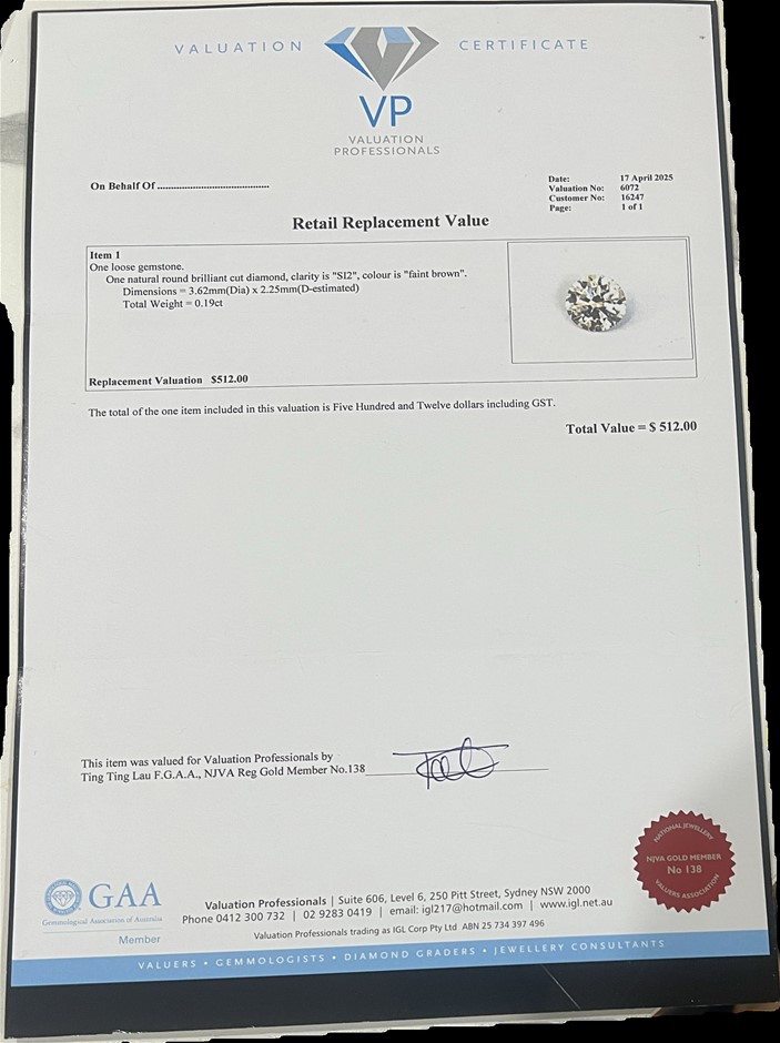 • 0.19 carat faint brown round diamond val:$512
