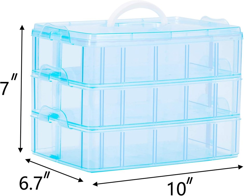 Sooyee Craft Storage Organizer,Hot Wheels Case,Sewing Box,3-Tier Plastic Organizer Box with Dividers, Storage Containers for Organizing Art Supplies, Fuse Beads,Washi Tape, Jewelry,Tool,Kids Toy,Blue (Code: B08RYZP5S6) (140491-110)