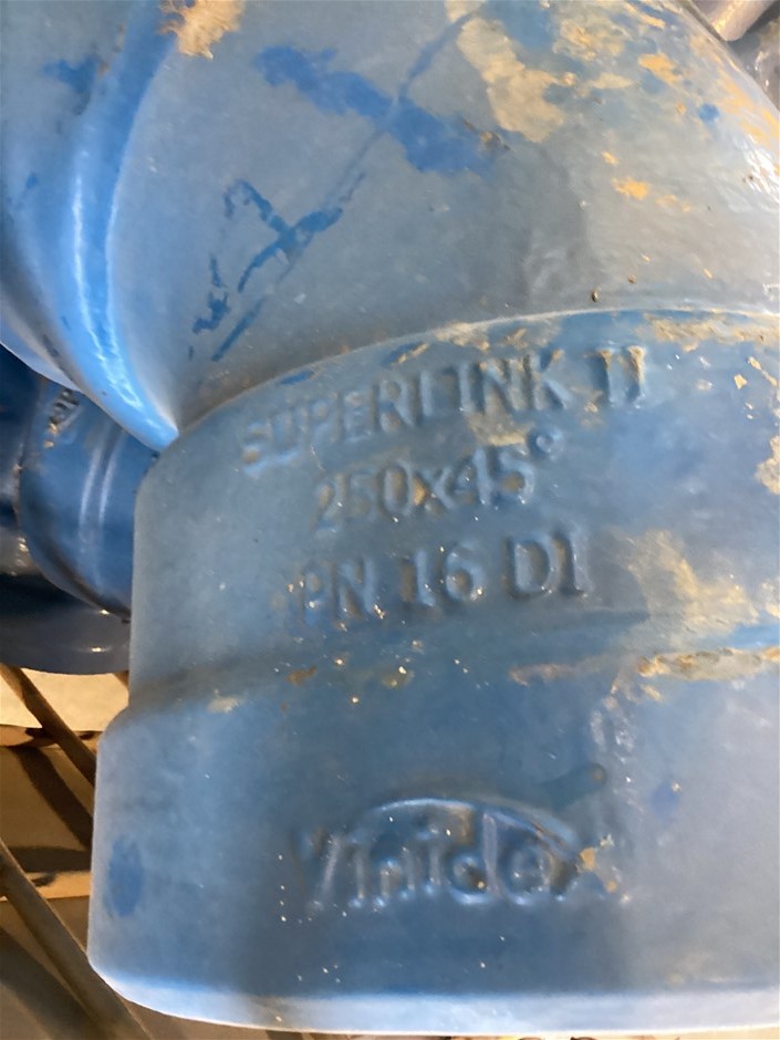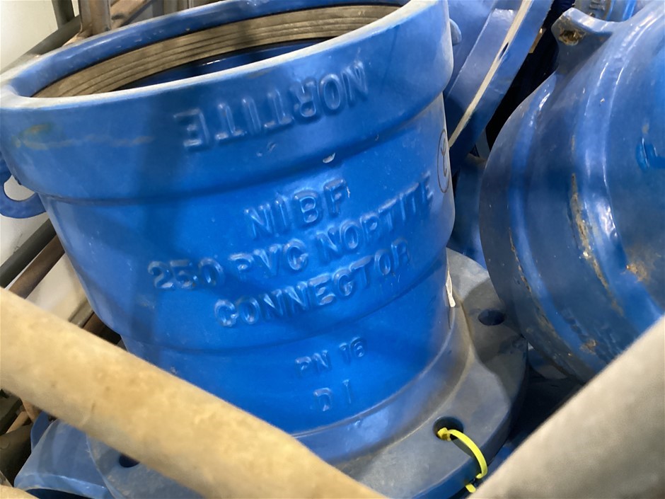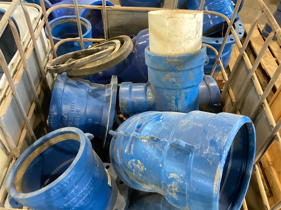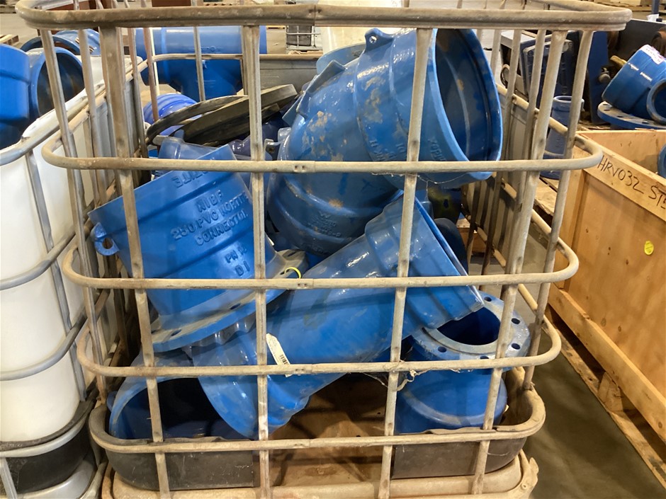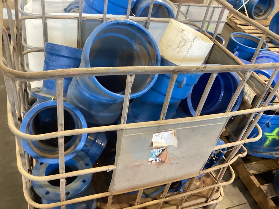• Crate Of Various Piping Tees, Connectors, Angled Pipe, 250 connector, 250 x 45 degree, 200-100 Tee and more