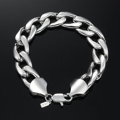 High Quality Rhodium Plated Classic 8`` Unisex Chunky Classic Curb Chain Bracelet