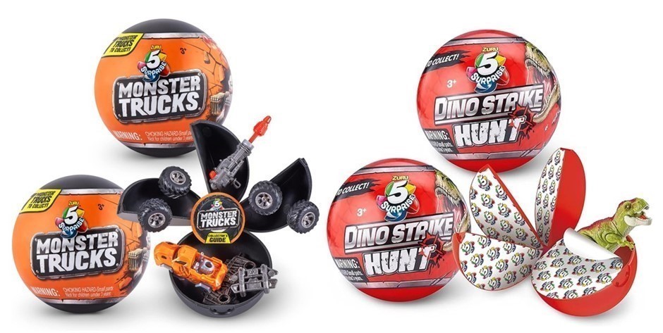 2 x 2 PACK ZURU 5 SURPRISE Dino Strike Series 3 - Dino Strike Hunt Capsules, and ZURU 77142 Monster Truck Capsule Collectible. (Code: ZAM-TB-B95) (138992-115)