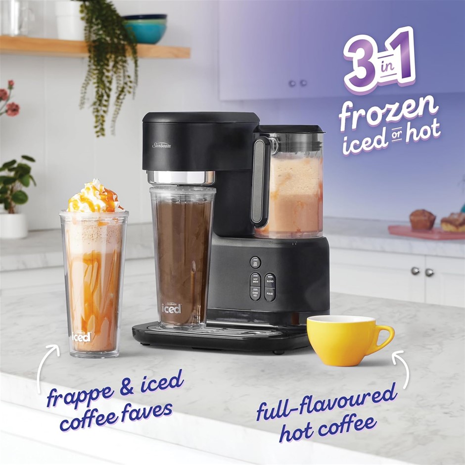 SUNBEAM 3-in-1 Frappe Iced and Hot Coffee Maker with Blender, Single Serve,