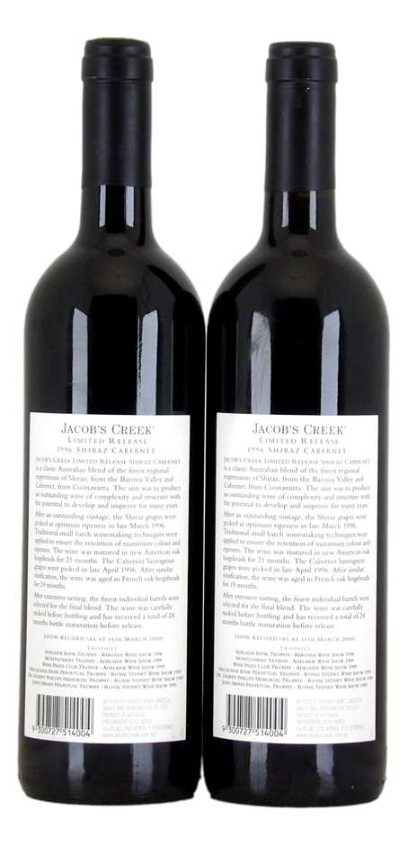Jacob`s Creek Limited Release Shiraz Cabernet 1996 (2x 750mL) Barossa Valley (329873-115)