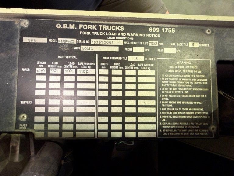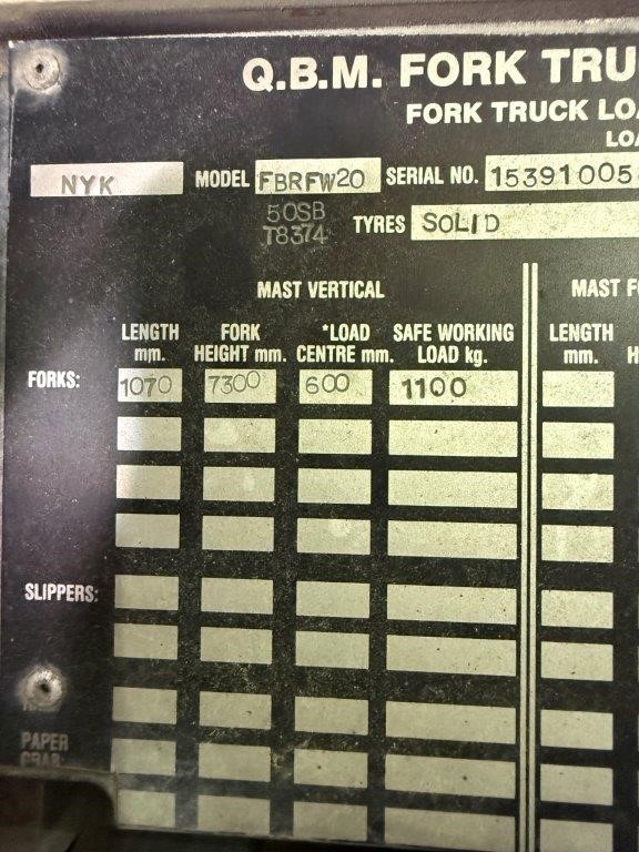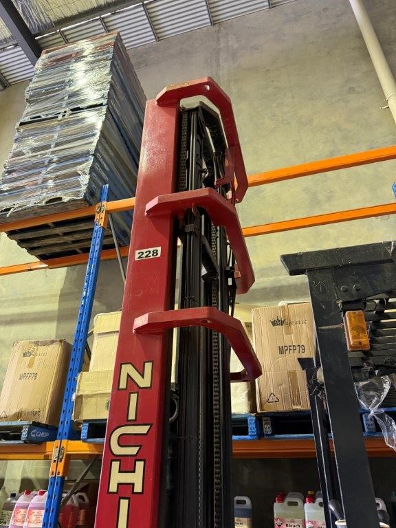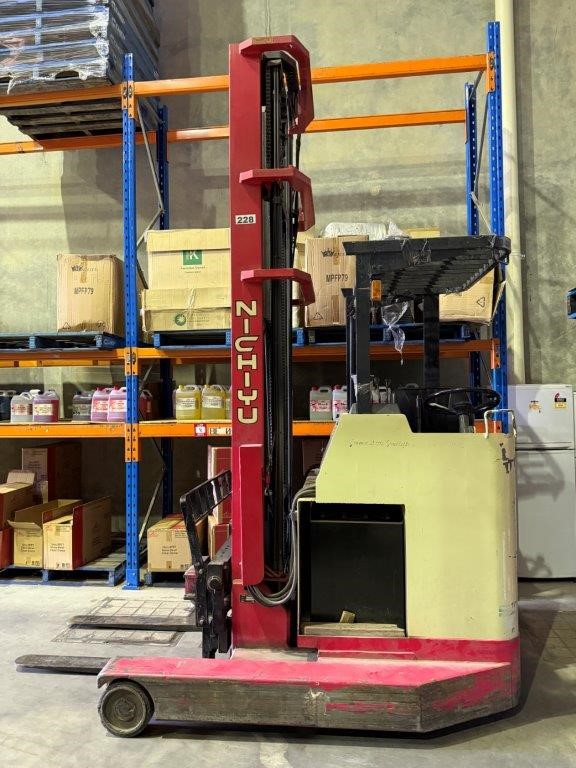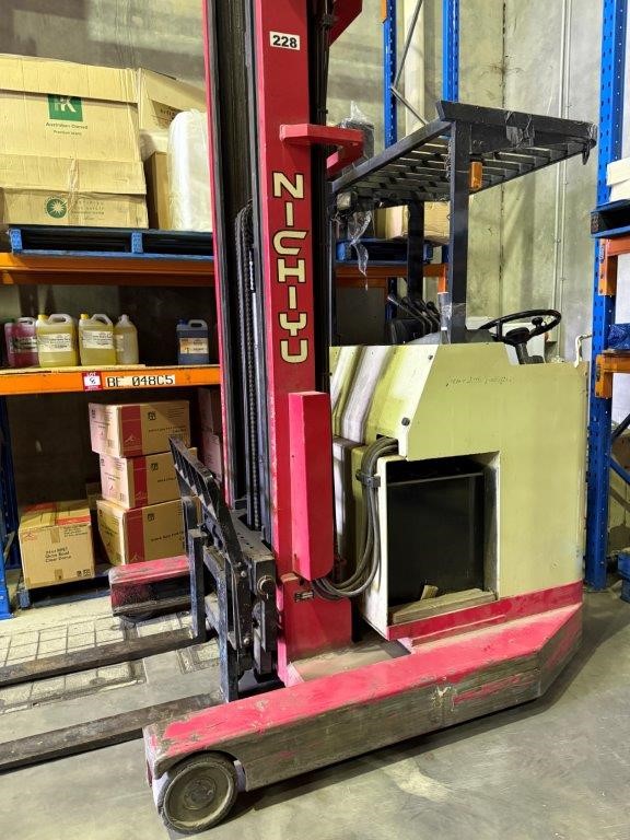 NYK / Nichiyu (Japan) FBRFW20 (also marked 50SB T8374) Nichiyu Electric Reach Forklift with Battery and Charger