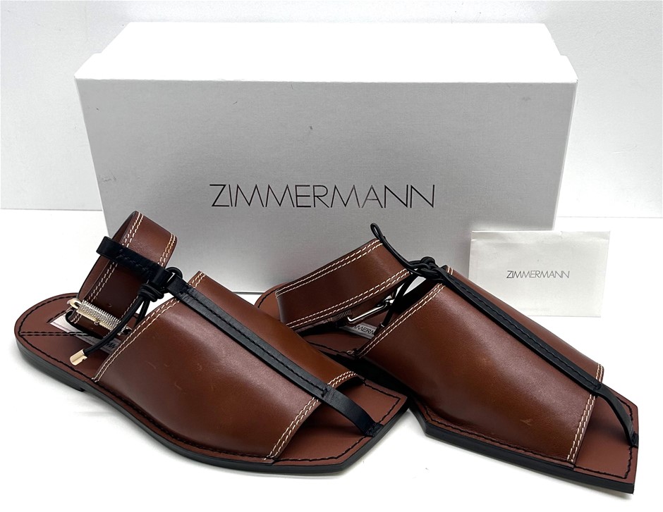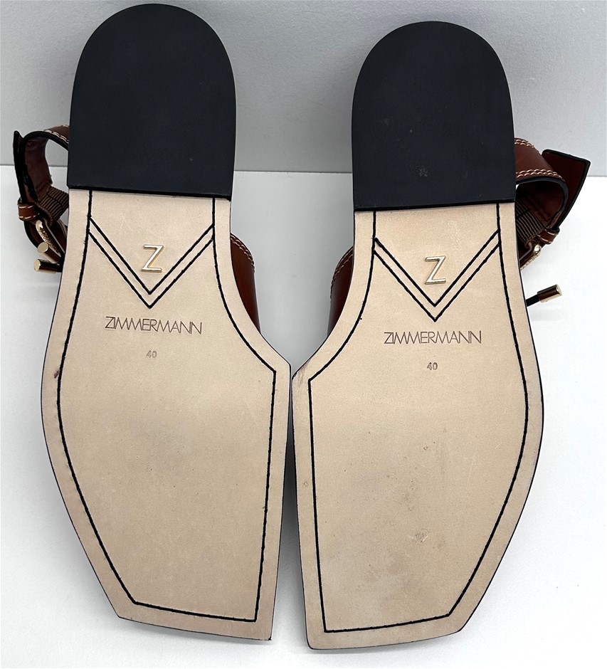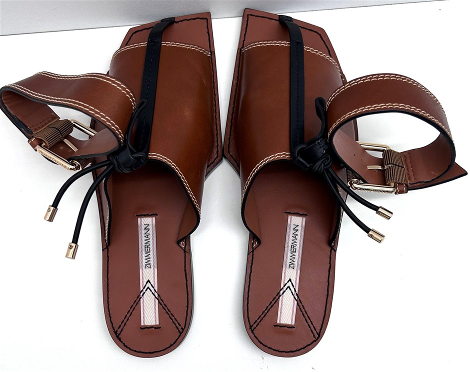 Zimmerman Cognac Leather Square Toe Flat Mule. Size 40
