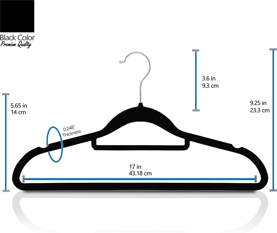 GVTECH Premium Velvet Hangers, 50-Pack Non-Slip Heavy-Duty Suit Hangers with Tie Bar and 360° Swivel Hooks, 45 cm, Black (139188-123)