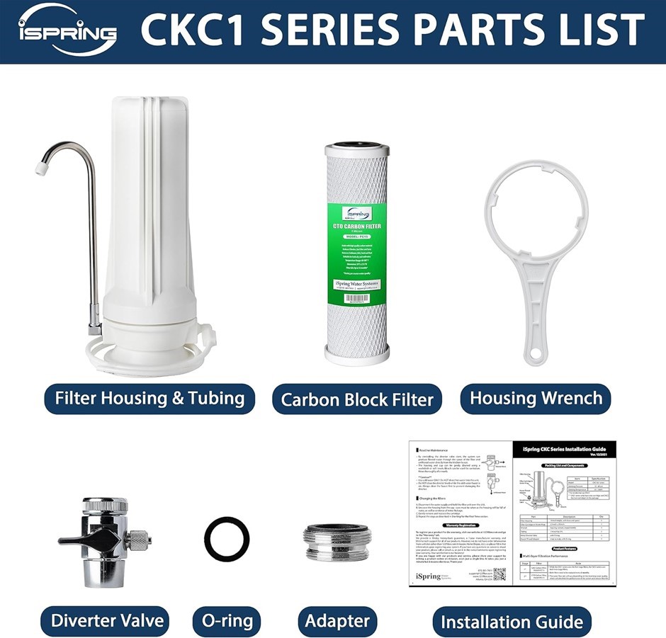 ISPRING Counter-top Drinking Water Filter, Filter Cartridge Included.