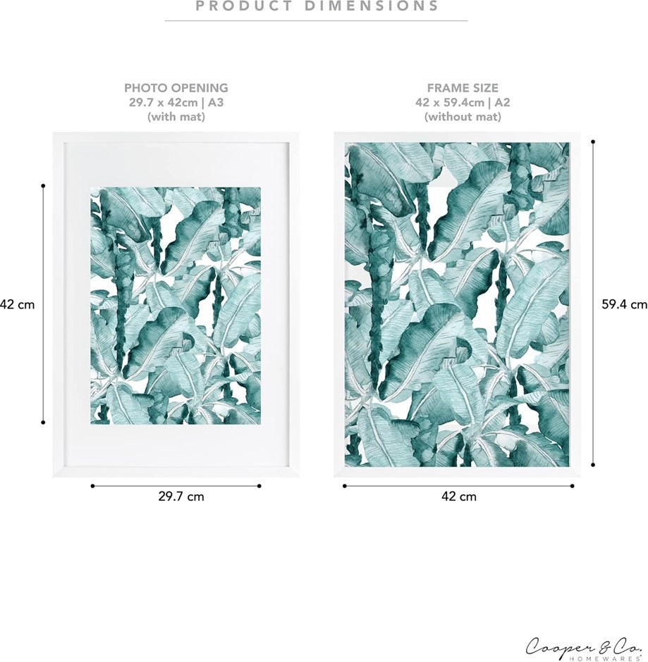 COOPER & CO. Premium Paradise Wooden Photo Frame, 42 x 59.4cm Matt to 29.7 x 42cm - White. (Code: B09376X6SS) (334064-123)