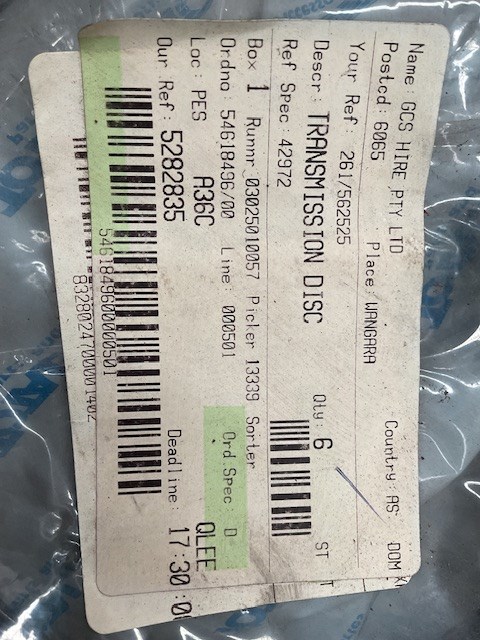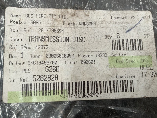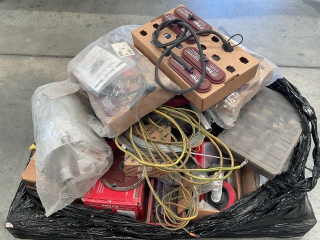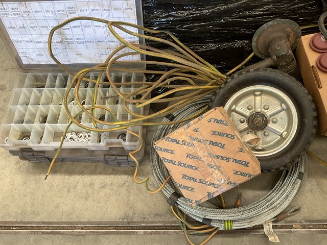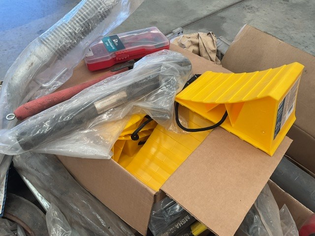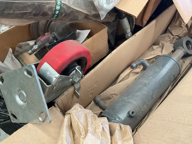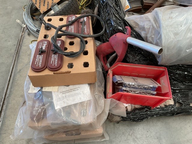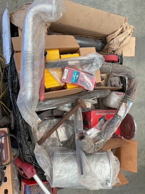 • Transmission discs, cable, tools, wheel chocks, rivets, exhaust, bobcat taillight, trolley wheels, may contain forklift parts,